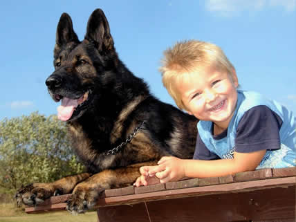 德牧即使在没有经过特殊训练,德牧都会对家人尤其是小孩,有很强保护欲,护主是德牧优良的品质之一;